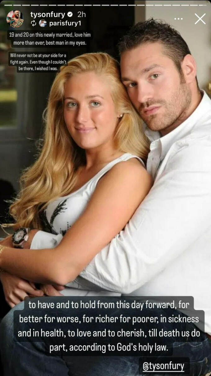 После завершения поединка жена Тайсона Перис Фьюри опубликовала пост в своих социальных сетях в поддержку мужа: