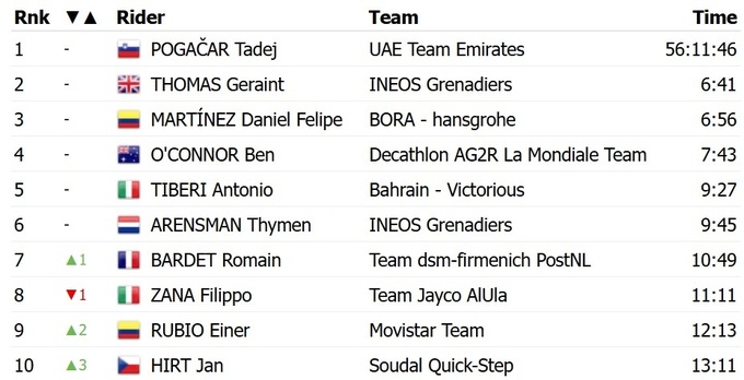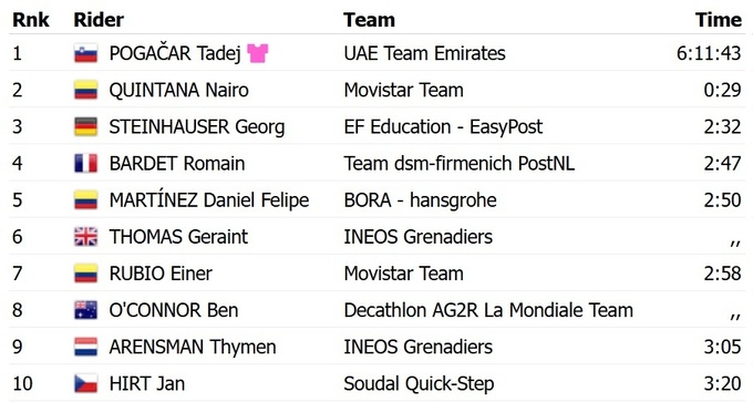 Соперникам по общему зачету Погачар привез почти три минуты. В генеральной классификации преимущество словенца уже превышает 6 минут.