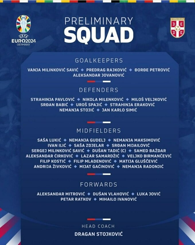 С Влаховичем и игроками из россии. Расширенная заявка Сербии на Евро-2024