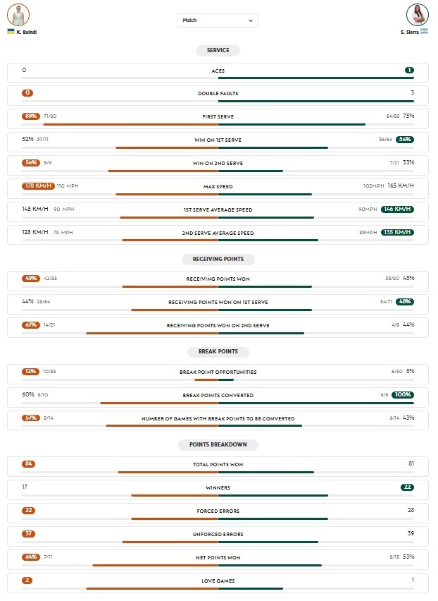 Катерина Байндл (Украина) – Солана Сиерра (Аргентина) – 6:1, 5:7, 3:6