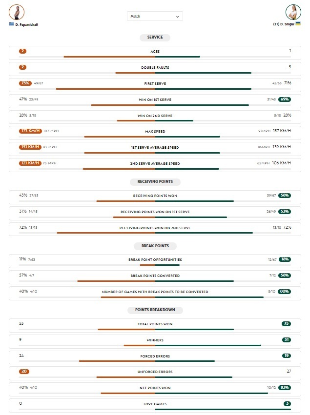 Дарья Снигур (Украина) – Деспина Папамихаил (Греция) – 7:5, 6:2