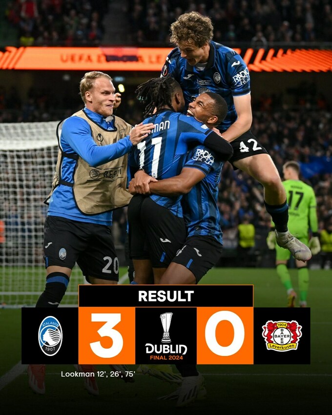 Три гола забил форвард Адемола Лукман, и команда из Бергамо впервые завоевала евротрофей.
