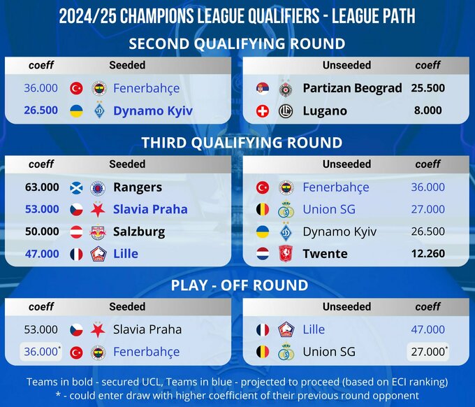 Тем не менее, «Динамо» все еще может получить посев в Q2 ЛЧ, что улучшит шансы команды на выход в основной раунд ЛЧ или ЛЕ. Это случится, если «Аталанта» финиширует в топ-4 Серии А 2023/24 (на 3-й или 4-й позиции). В этом случае Бенфика попадет (вместо Q3) напрямую в основу ЛЧ.