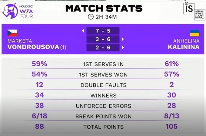 Ангелина Калинина (Украина) – Маркета Вондроушова (Чехия) – 5:7, 6:3, 6:2