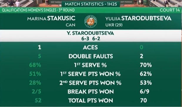 Юлия Стародубцева (Украина) – Марина Стакушич (Канада) – 6:3, 6:2