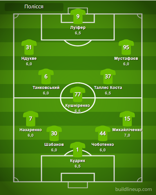 «Полесье»: Кудрик – Назаренко, Шабанов, Чоботенко, Михайличенко – Танковский (Чечер, 90+6), Кушниренко, Таллес Коста (Крамар, 90+2) – Ндукве (Фортюне, 68), Луифер, Мустафаев.