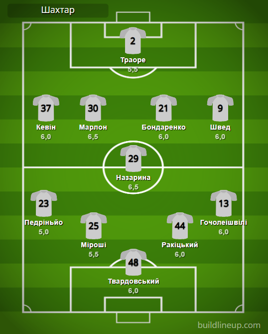 «Шахтер»: Твардовский – Педриньо (Цуканов, 63), Мироши, Ракицкий (Лемкин, 23), Гочолеишвили – Назарина – Кевин, Марлон (Сикан, 63), Бондаренко (Крыськив, 62), Швед – Траоре.