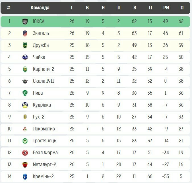 Турнирное положение: ЮКСА (62 очка, финиш), Звягель (61 очко, финиш), Дружба (59 очков, осталась 1 игра), Чайка (50, плюс 1 игра).