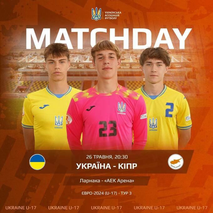 26 мая в 20:30 в городе Ларнака на чемпионате Европы 2024 U-17 юношеская сборная Украины U-17 проведет матч 3-го тура против команды Кипра.