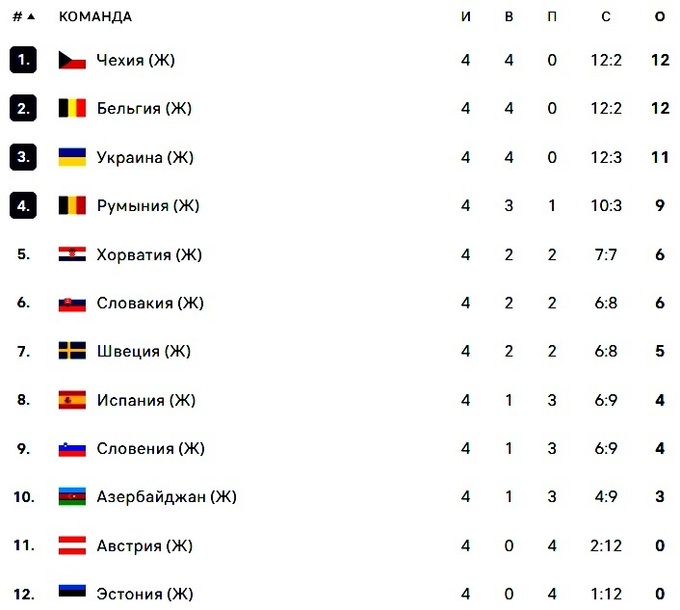 В женском турнире без поражений выступают три сборные – Бельгии, Чехии и Украины. Но в отличие от первых двух команд, подопечные Ивана Петкова имеют на одно очко меньше. Тем не менее, у всех трех сборных отличные шансы пробиться в финальный квартет, так как Украину отделяет от Хорватии, занимающую 5 место, пять очков. А это значит, что лидерам достаточно выиграть хотя бы один из двух оставшихся матчей и задача-минимум будет решена. Кстати, Чехия и так будет представлена в решающих играх, потому что будет хозяином «Финал четырех».