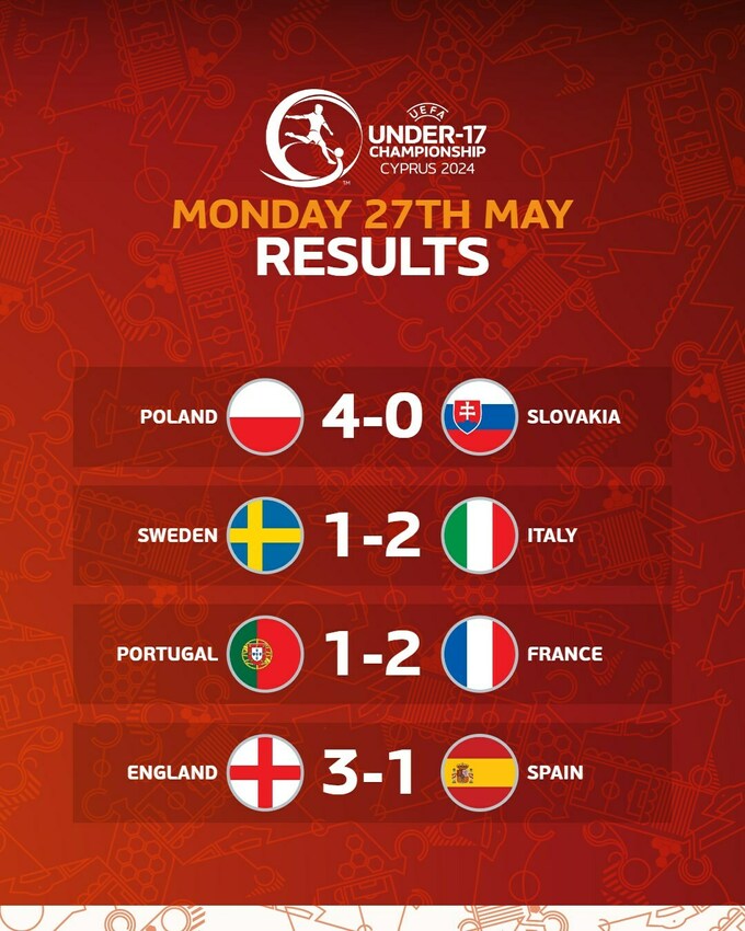 27 мая завершился 3-й тур чемпионата Европы 2024 U-17. Определены все четвертьфинальные пары