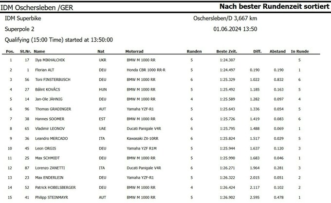 Михальчик и его главный соперник, действующий чемпион серии Флориан Альт стали единственными, кто выехал из 1 минуты и 25 секунд. Замкнул первый стартовый ряд еще один райдер на BMW Тони Финстербуш из частной команды Gert56.