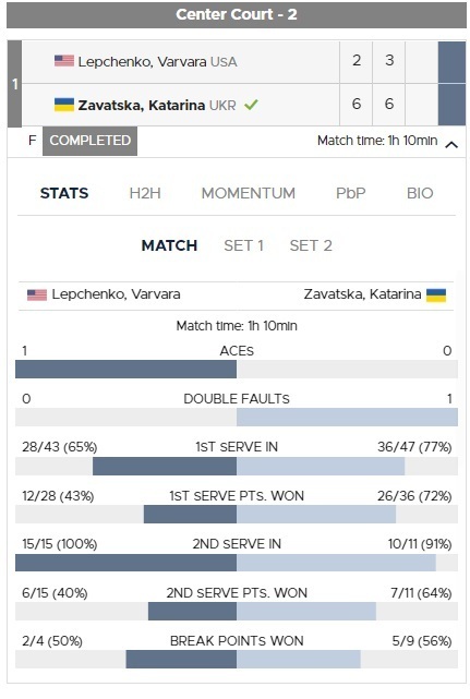 Катарина Завацкая (Украина) – Варвара Лепченко (США) – 6:2, 6:3
