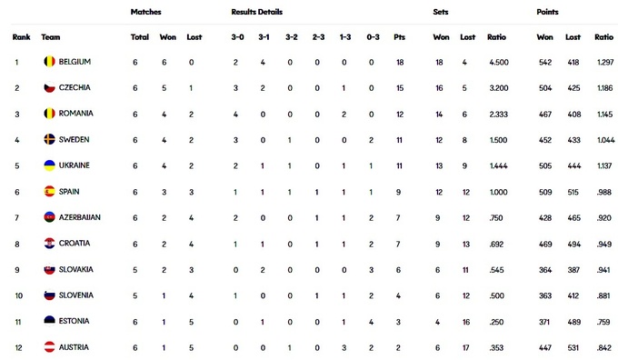 В итоговой таблице по дополнительному показателю украинок опередила сборная Швеции