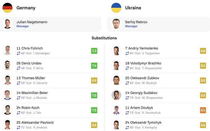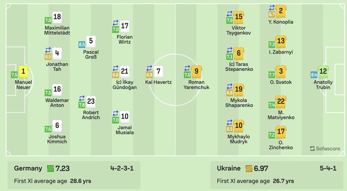Самый высокий балл за матч получил полузащитник сборной Германии Паскаль Гросс – 8.5. Роберт Андрих получил 7.8, а Максимилиан Миттельштадт – 7.9.
