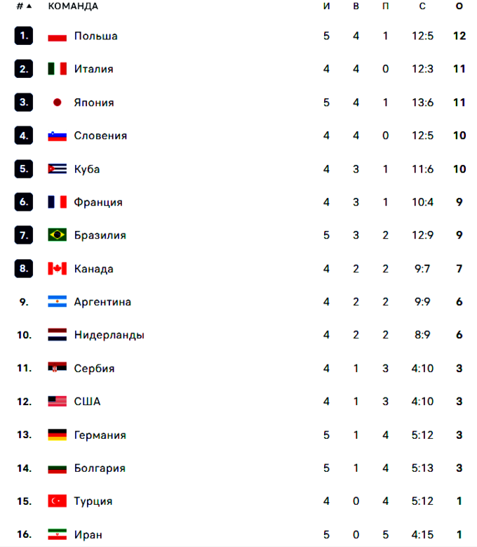 Поляки нанесли поражение болгарской сборной 3:1 и снова возглавили таблицу Лиги наций. После пяти матчей у них стало 12 очков. В третьем матче вторника волейболисты Японии обыграли команду Ирана 3:0. Теперь у хозяев площадки 11 очков и 4 место.