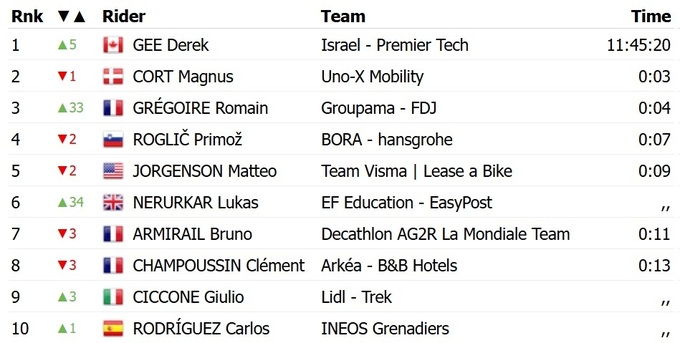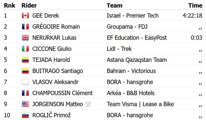 Канадский велогонщик команды «Israel Premier Tech» Дерек Джи стал победителем третьего этапа престижной многодневки Мирового тура Критериум Дофине. В финишном спринте из пелотона он опередил француза Ромена Грагуара из «Groupama FDJ» и британца Лукаса Неруркара из «EF Education – Easy Post».