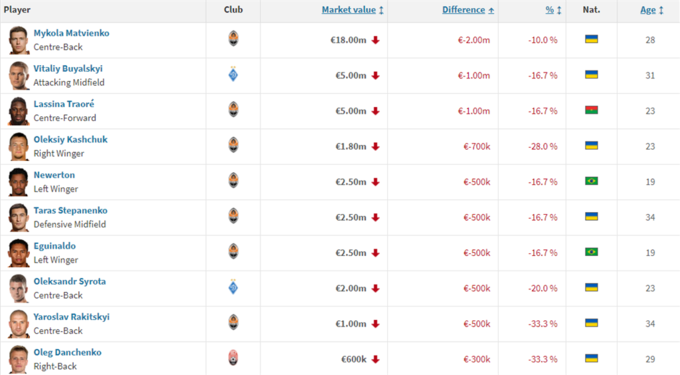 Наиболее ощутимое падение в цене - у его партнера по команде, защитника Николая Матвиенко. Его стоимость снизилась с 20 до 18 миллионов.