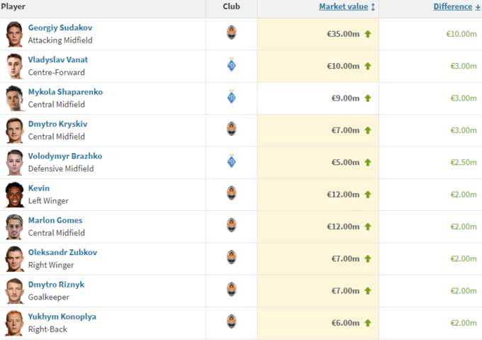 По сравнению с предыдущим обновлением (18 марта) больше всех вырос в цене хавбек “Шахтера” Георгий Судаков. Его стоимость увеличилась на 10 миллионов и теперь составляет 35 миллионов евро.