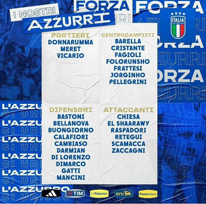 На групповом этапе Евро-2024 сборная Италии сыграет с Испанией, Хорватией и Албанией.