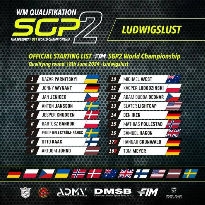 Турнир пройдет завтра, 8 июня, в немецком Людвигслусте. Всего в нем выступят 16 райдеров, еще двое – запасные. Назар Парницкий будет выступать под номером 1. Начнется квалификация в 18:00 по киевскому времени.