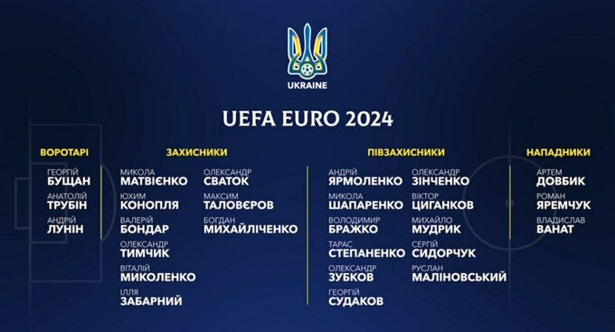 Тренерский штаб сборной Украины во главе с Сергеем Ребровым сформировал официальную заявку команды на финальную часть Евро-2024.
