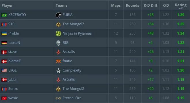 Лучшим игроком по рейтингу на турнире является Кайке KSCERATO Церато, он за семь карт набил рейтинг 1.29. Но звание MVP турнира получил Усухбаяр 910 Банзрагч, потому что его коллектив победил на турнире. Рейтинг монгола 1.25 за 11 карт.