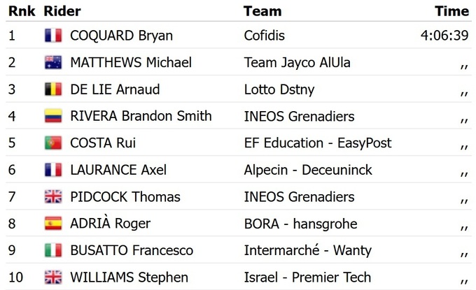 Французский велогонщик команды «Cofidis» Брайан Кокар стал победителем престижной швейцарской многодневки Мирового тура Тур Швейцарии. В финишном спринте он опередил австралийца Майкла Мэттьюза из «Jayco AlUla» и бельгийца Арно Де Ли из «Lotto Dstny».