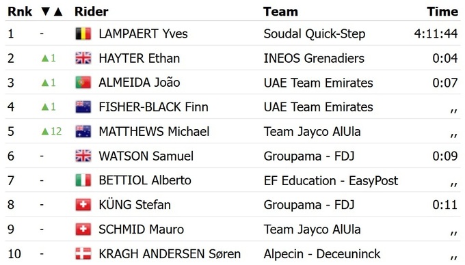 Общий зачет продолжает возглавлять победитель вчерашнего первого этапа, бельгиец Ив Лампарт из команды «Soudal Quick Step».