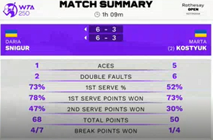 Дарья Снигур (Украина) – Марта Костюк (Украина) – 6:3, 6:3