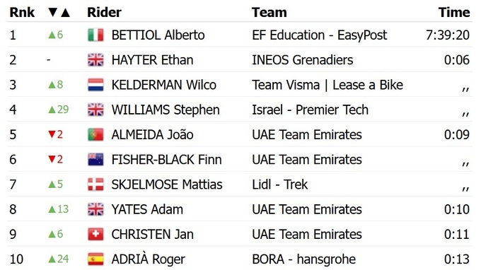 Беттиолю это третье место позволило перехватить желтую майку лидера общего зачета.
