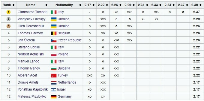 Два украинца завоевали медали. Владислав Лавский с результатом 2.29 м взял серебро, а Олег Дорощук занял третье место (2.26 м).