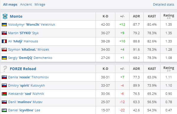Их соперником в рамках 1/4 финала закрытой квалификации был российский клуб ForZe. Соперник выбрал для первого раунда карту Ancient и очень уверенно начал игру, выиграв первую половину со счетом 8:4. Игроки Monte собрались, что позволило совершить камбэк – 13:11.
