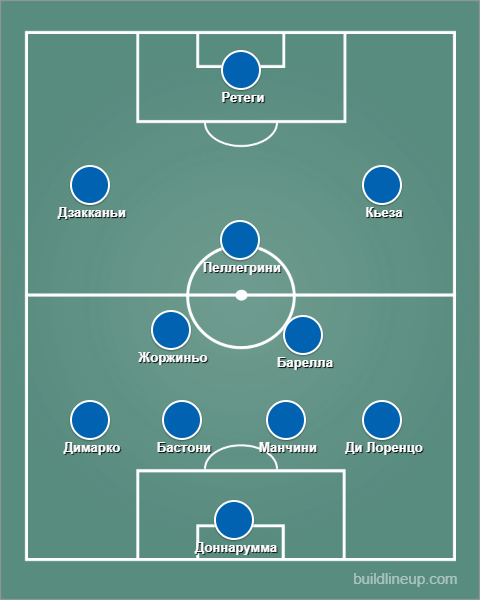 В полузащите тоже есть кому играть. Кьеза на месте. Он, как и Доннарумма, лучше играет в сборной, а не в клубе. Есть и Пеллегрини с Фраттези.