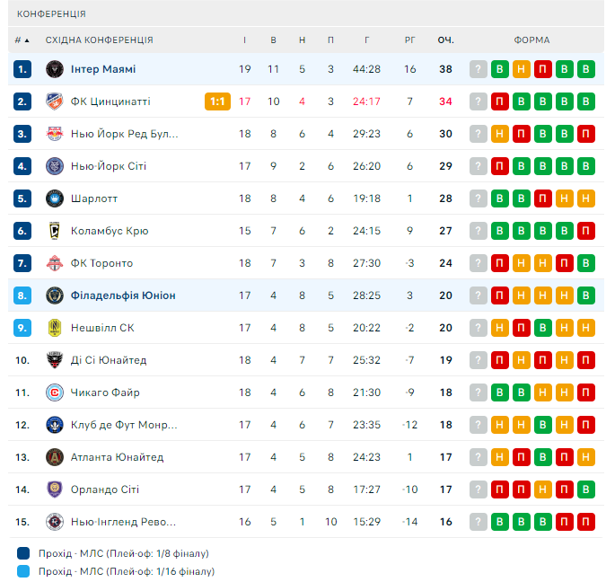 После этой победы «Интер Майами» продолжает лидировать, но по потерянным очкам уступает «Цинциннатти».