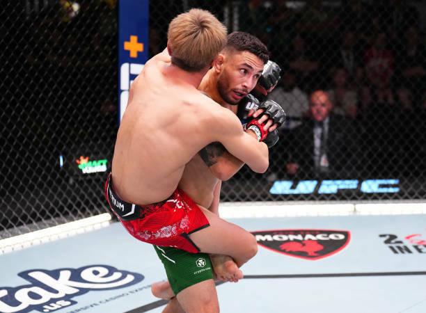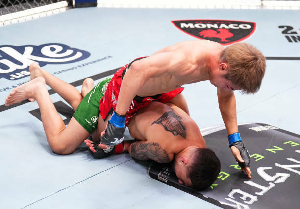 Во втором раунде японец провел тейкдаун и оказался у соперника на спине