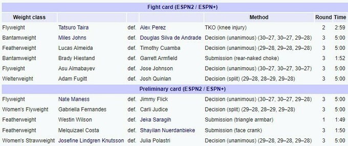 В главном бою встретились: Алекс Перес (США, 25–8) и Тацуро Таира (Япония, 15–0)