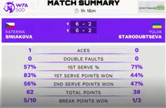 Юлия Стародубцева (Украина) – Катерина Синякова (Чехия) – 2:6, 2:6