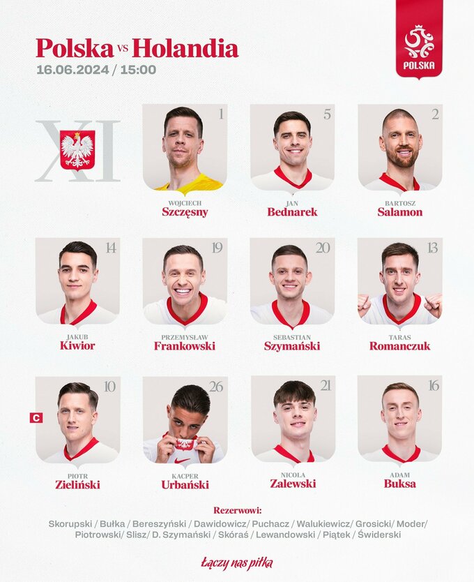 Польша: Щенсны, Беднарек, Кивёр, Саламон, Франковски, Урбаньски, Романчук, Залевски, Шиманьски, Зелиньски, Букса.