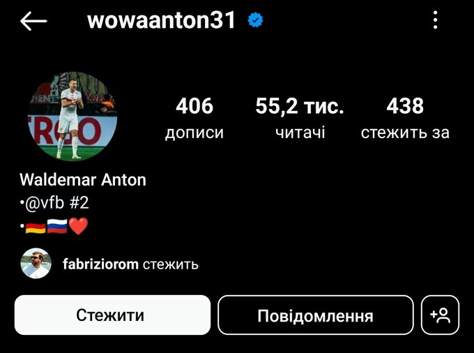 Вальдемар Антон является уроженцем Узбекистана, но всю профессиональную карьеру провел в Германии, а в марте 2024 года даже дебютировал за Бундестим. Интересно, что ранее Антон выражал желание играть за сборную россии. Флаг страны-террориста до сих пор «украшает» его страницу в Instagram.