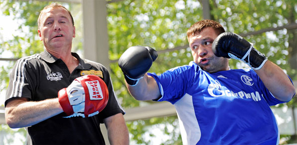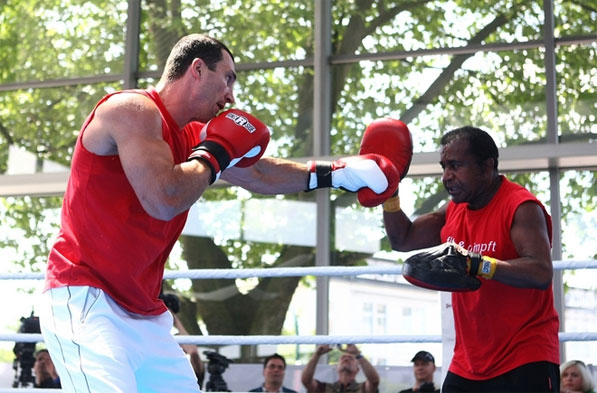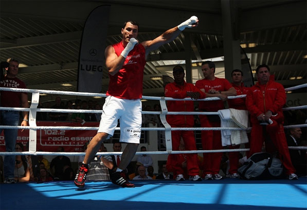 Владимир Кличко и Руслан Чагаев провели открытую тренировку в Fahrzeug-Werke LUEG AG, в Эссене. Бой между двумя супертяжами состоится 20 июня на Veltins Arena auf Schalke.
