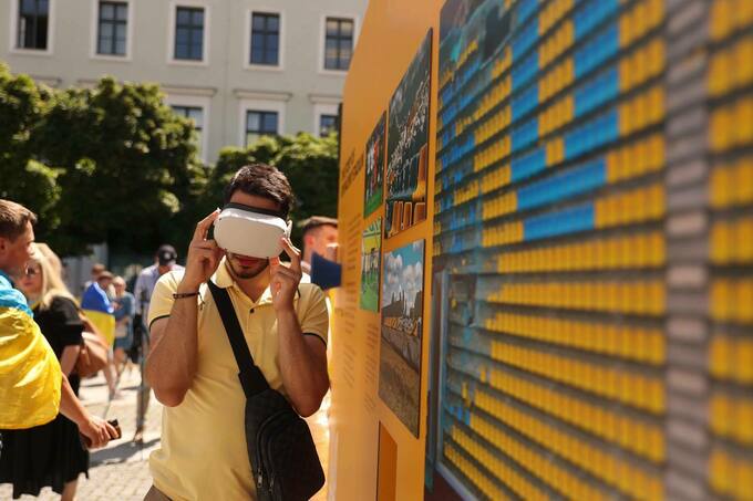 Трибуна сочетается с интерактивной инсталляцией: посетители смогут прочесть и услышать историю «Солнечного», который был тренировочной базой сборной Нидерландов на Евро-2012, а затем стал главным тренировочным стадионом для национальной команды Украины. VR-очки перенесут каждого на стадион в реальном времени, чтобы увидеть, как он выглядит после российского удара.