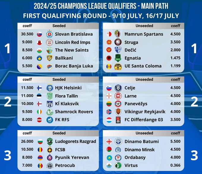Лига чемпионов 2024/25. Жеребьевка Q1