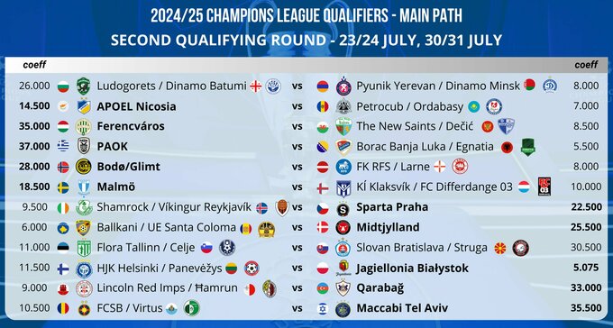 19 июня в 13:00 в швейцарском Ньоне состоялась жеребьевка второго раунда квалификации (Q2) Лиги чемпионов 2024/25.