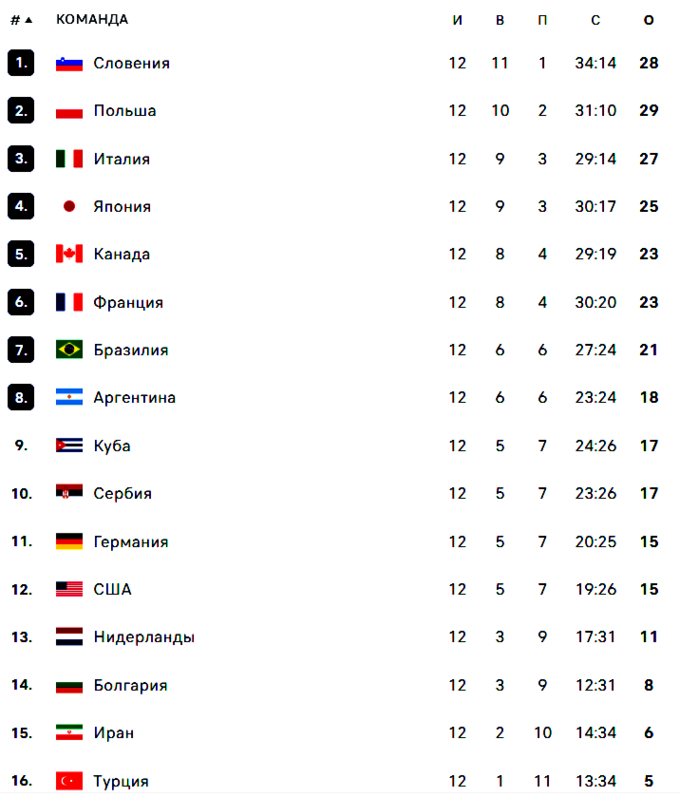 Кстати, аргентинцы, сыграв свой заключительный матч еще в субботу, не знали до последнего поединка Словения – Сербия, попадут ли они в плей-офф. Но выручили словенцы, которые одержали победу 3:2, и таким образом, отцепили соперников от дальнейшего участия в турнире.