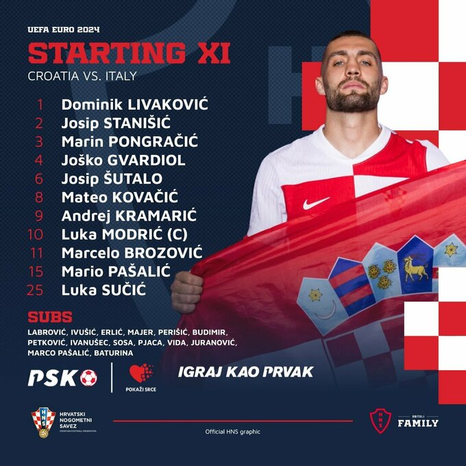Матч за выход в плей-офф. Составы на игру Хорватия – Италия