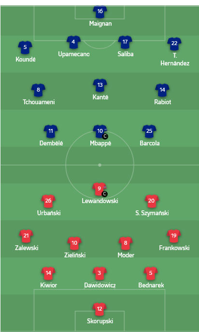 Составы на матч Франции и Польши. Мбаппе и Левандовски выйдут в основе