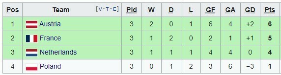 В матчах 3-го тура Австрия переиграла Нидерланды (3:2), а Франция и Польша сыграли вничью (1:1).