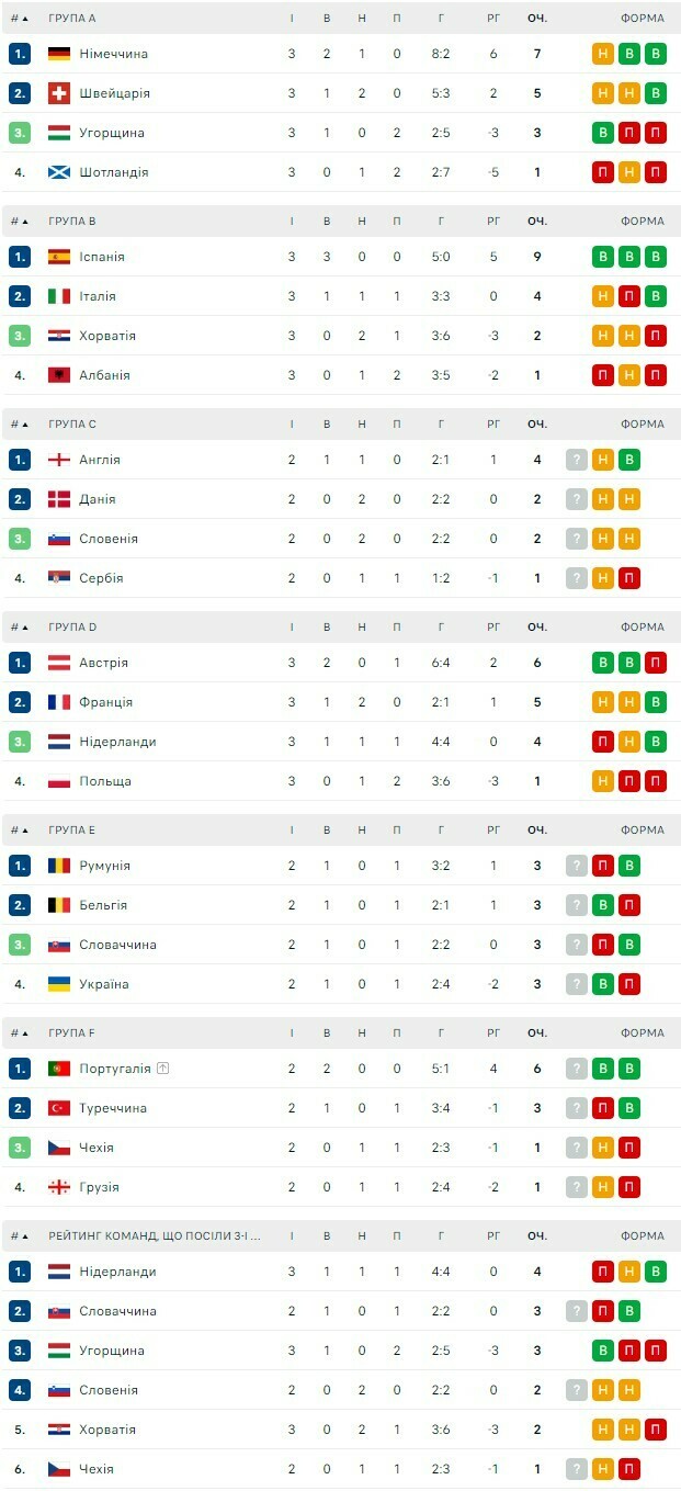 Таблицы Евро-2024. Австрия выиграла группу, опередив Францию и Нидерланды