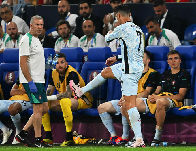 Криштиану Роналду был заменён на 66 минуте и покидал поле с недовольным лицом.